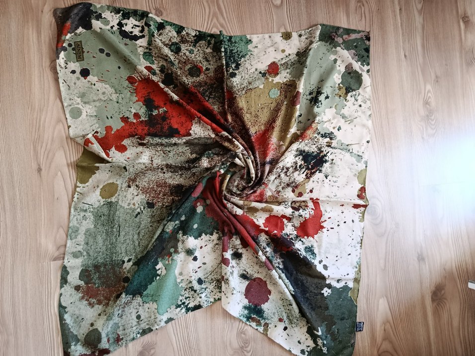 Kadın çok renkli, dökümlü bohem desenli fular. Tekstil kumaştan, avangart sıçrama desenli, şık bir görünüm sunar. Ürün alınırken etiketsiz olarak alındı bilginize