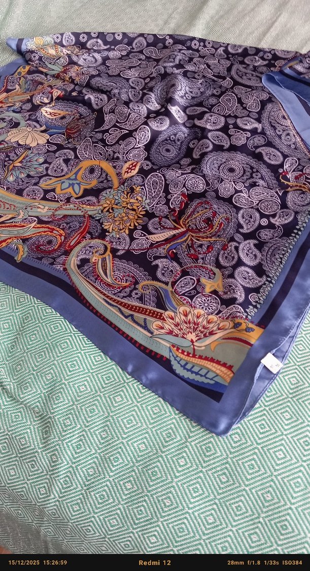 Kadınlar için çok renkli, ipek dokulu bohem desenli şal. Koyu tonlarda ve drapeli tarzda, hippie ve retro görünüme uyum sağlar.