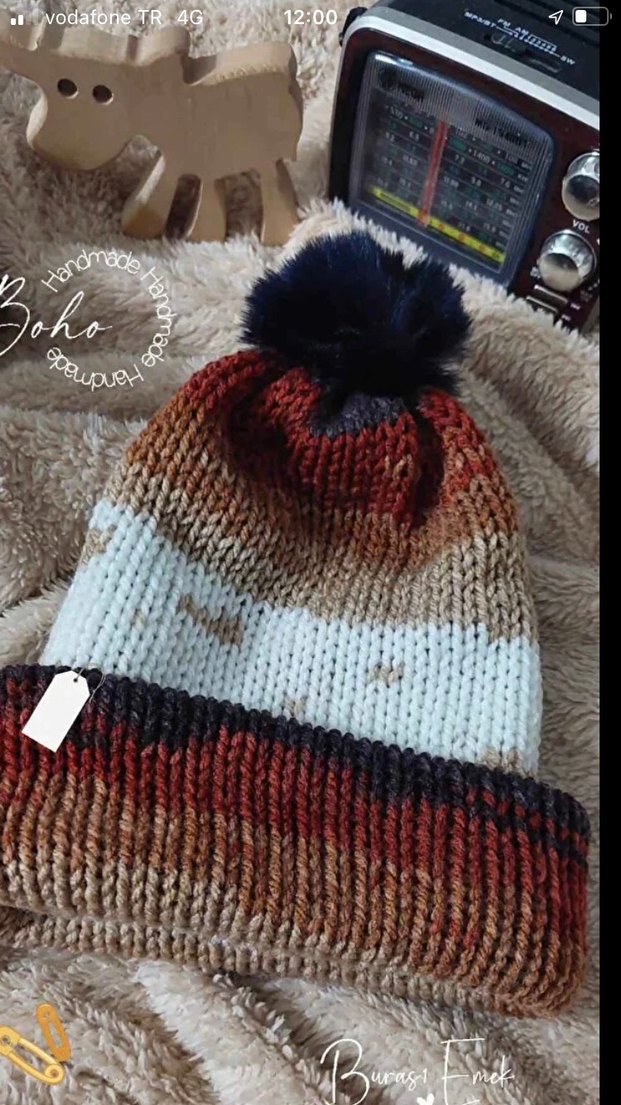 Kadın Çok Renkli Bohem Örgü Bere