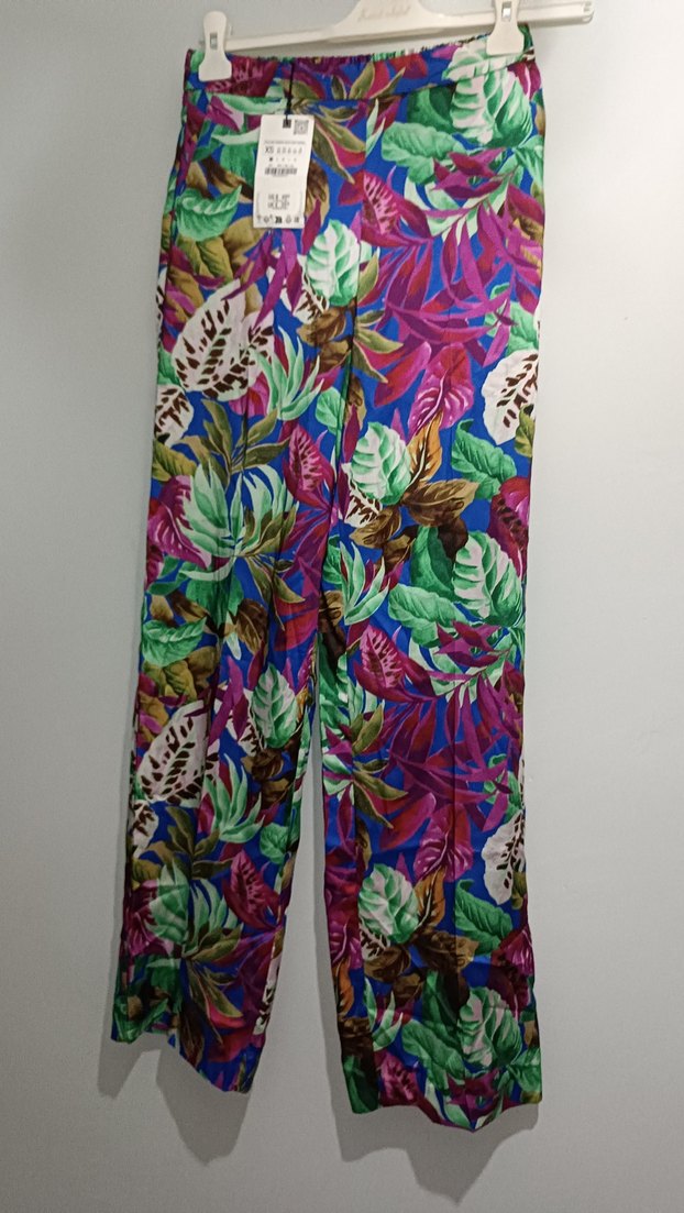 Kadınlar için çok renkli tie-dye desenli, bol kesim, uzun boy ve pilili detaylara sahip sentetik kumaş pantolon. Bohem tarzını yansıtır.