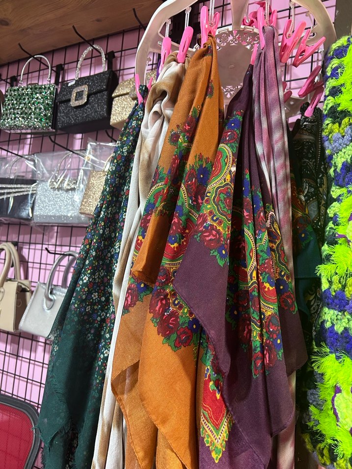 Kadınlar için çok renkli, koyu tonlarda dokuma kumaştan yapılmış, bohem ve retro tarzda drapeli şal. Canlı desenleriyle hippie kültürünü yansıtıyor.