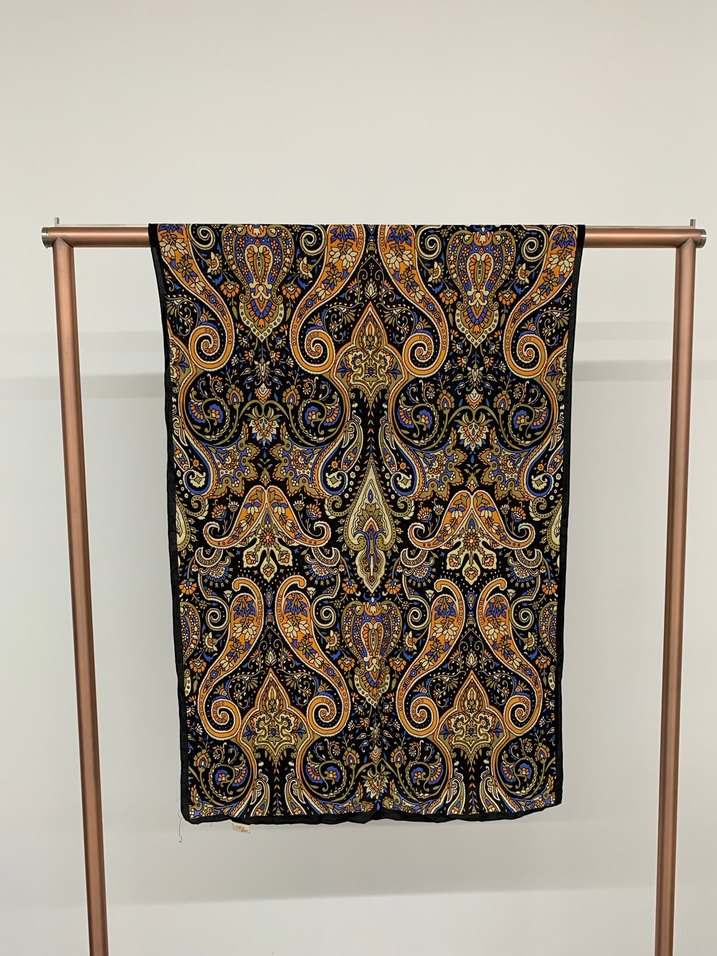 Kadınlar için koyu çok renkli bohem desenli, yumuşak kumaştan drapeli şal. Retro ve hippie tarzını yansıtır. Görsellerde göründüğü gibidir sorunsuzdur