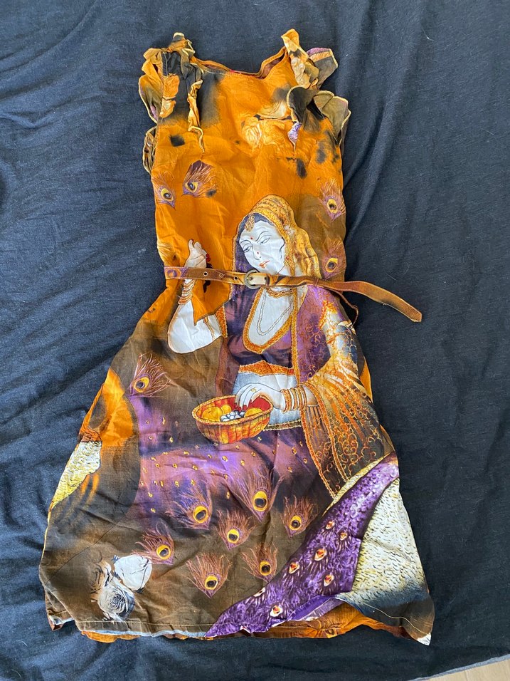 SATILDI…Bohem tarzı, halter yakalı, kolsuz, dar kesim çok renkli baskılı uzun elbise, drapeli detaylara sahiptir. Annemin dolabından vintage bir elbise. Keten kumaş kalın değil. 65kg 167 boy M beden tam olmakta. Herhangi bir defosu yok. çok az giyildi. Fermuarı düzgün çalışıyor. istenilen tadilatlar yapılabilir.