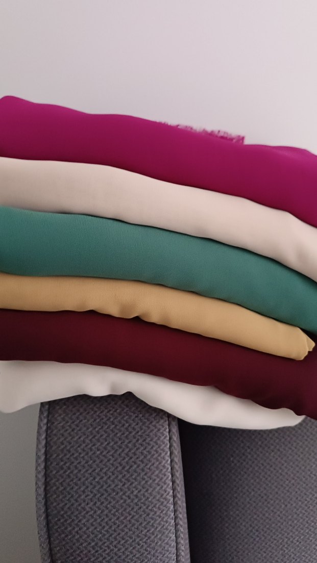 Kadınlar için çok renkli, dökümlü tasarıma sahip, yumuşak sentetik kumaştan yapılmış, rahat ve çağdaş şal.