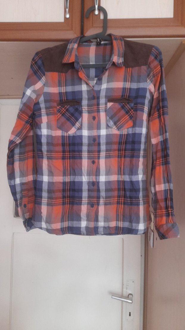 Kadınlar için düğmeli, uzun kollu ve yakalı gömlek. Çok renkli ekose deseni ve bol kesimiyle sentetik kumaştan üretilmiştir. Günlük kullanıma uygundur.