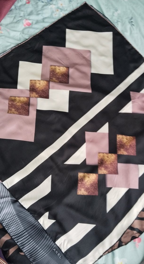 Kadınlar için çok renkli geometrik desenli, koyu renk sentetik kumaştan fırfırlı şal, avangart stil için uygun.