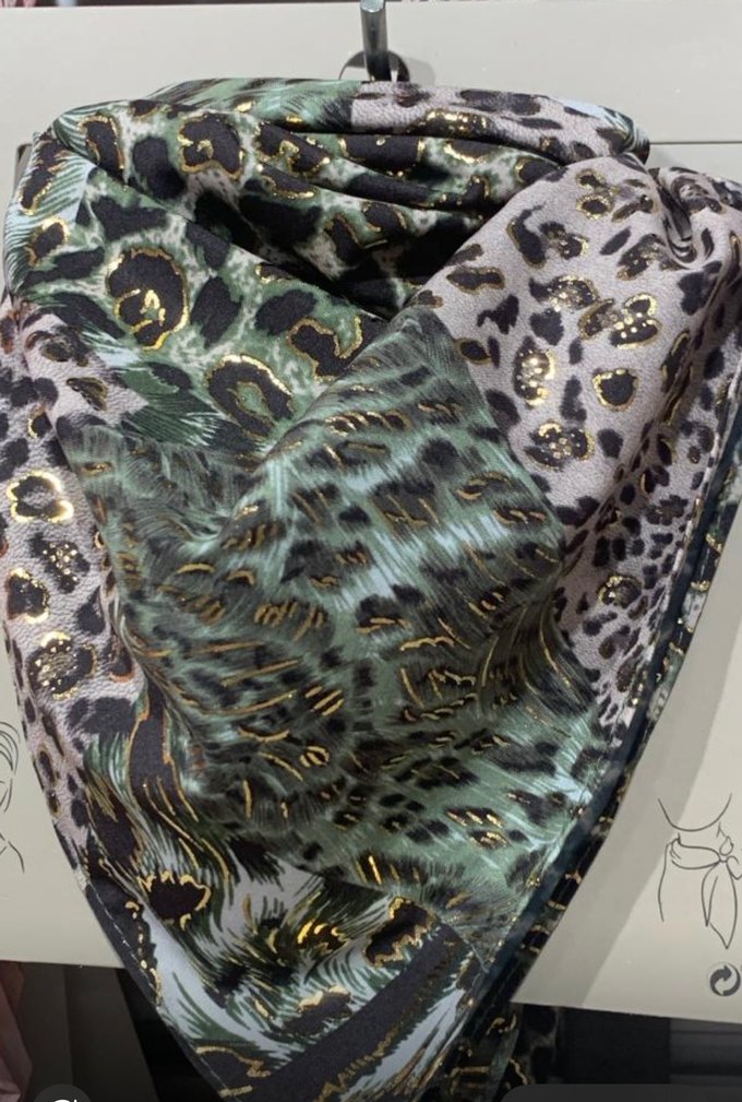 Kadınlar için, koyu tonlarda çok renkli hayvan desenli, altın detaylı, ipek kumaştan z.ra fularlar
