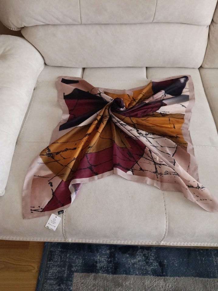 Kadınlar için çok renkli, ipeksi dokulu, çağdaş ve drapeli tarzda eşarp Koyu tonlarda avant-garde desenlerle Paris tarzına uygun. 2 şu beraber satışta