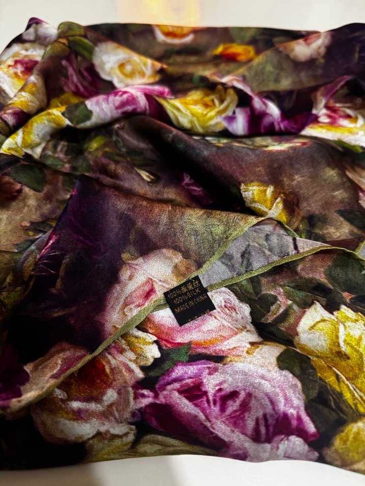 Kadınlar için çok renkli çiçek desenli, ipek dokulu eşarp.Bohem tarzda ve modaya uygun.
