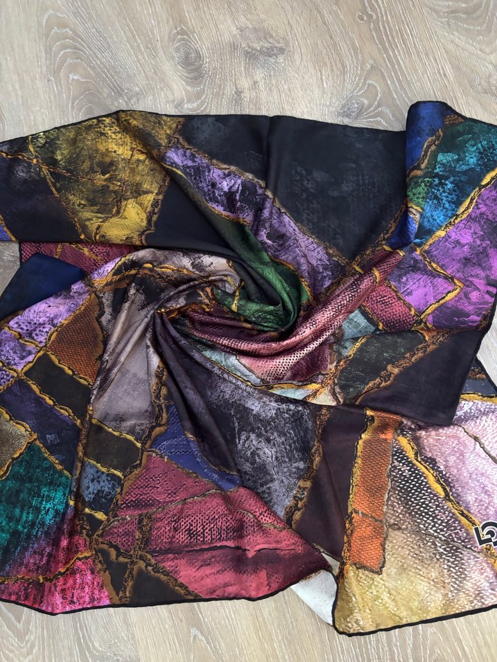 Kadınlar için çok renkli, ipek görünümlü ve drapeli bohem tarzda eşarp. Koyu tonlarda, hippie ve retro stillere uyum sağlar.
