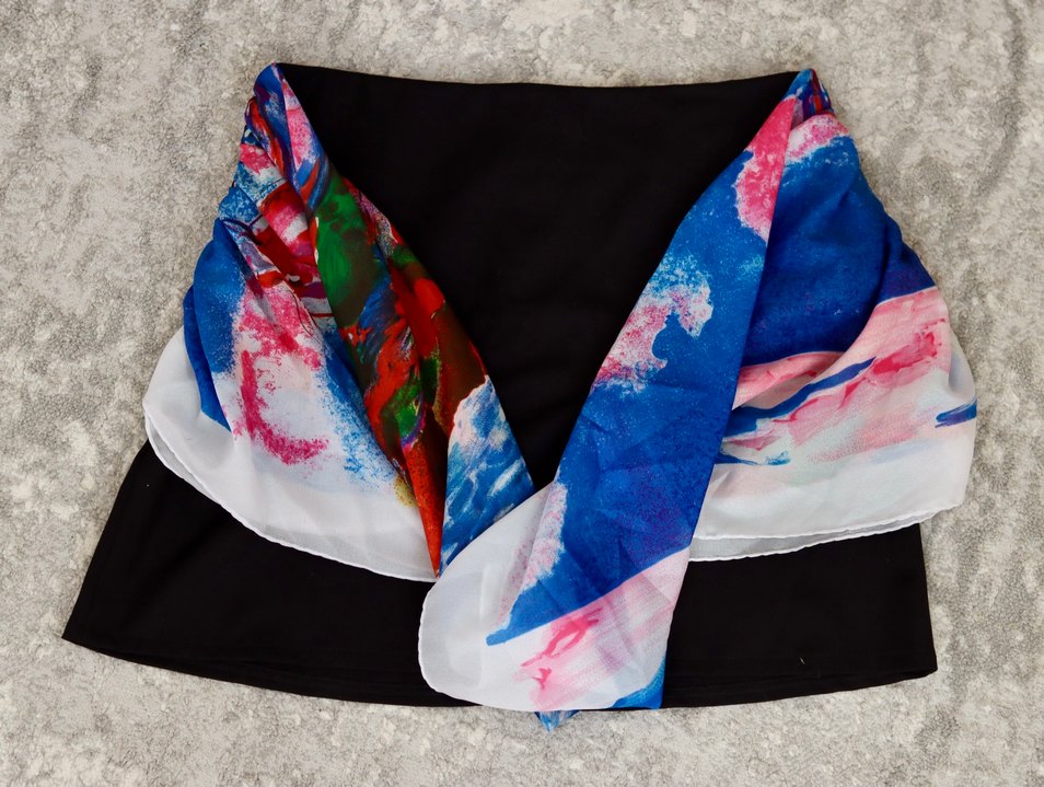 Kadın Çok Renkli İpek Kuşaklı Mini Etek