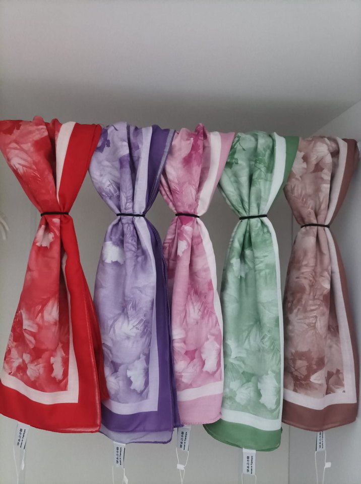 İpekten yapılmış, pastel renklerde ve drapeli tasarıma sahip kadın şalları. Paris modasından esinlenmiştir, trend belirleyiciler için uygun.