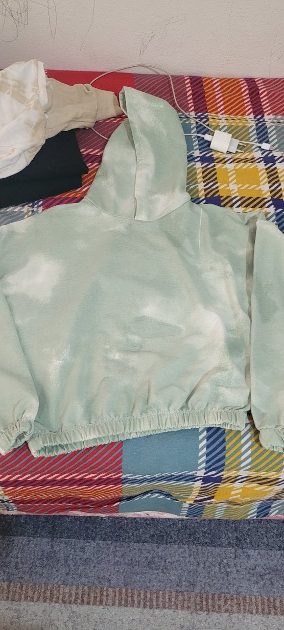 Kadınlar için çok renkli pastel bağlama deseni, kapüşonlu, uzun kollu ve bol kesim bir sweatshirt. Normal boyda, elastik bel detaylı, rahat ve şık bir sokak giyimi parçası.
