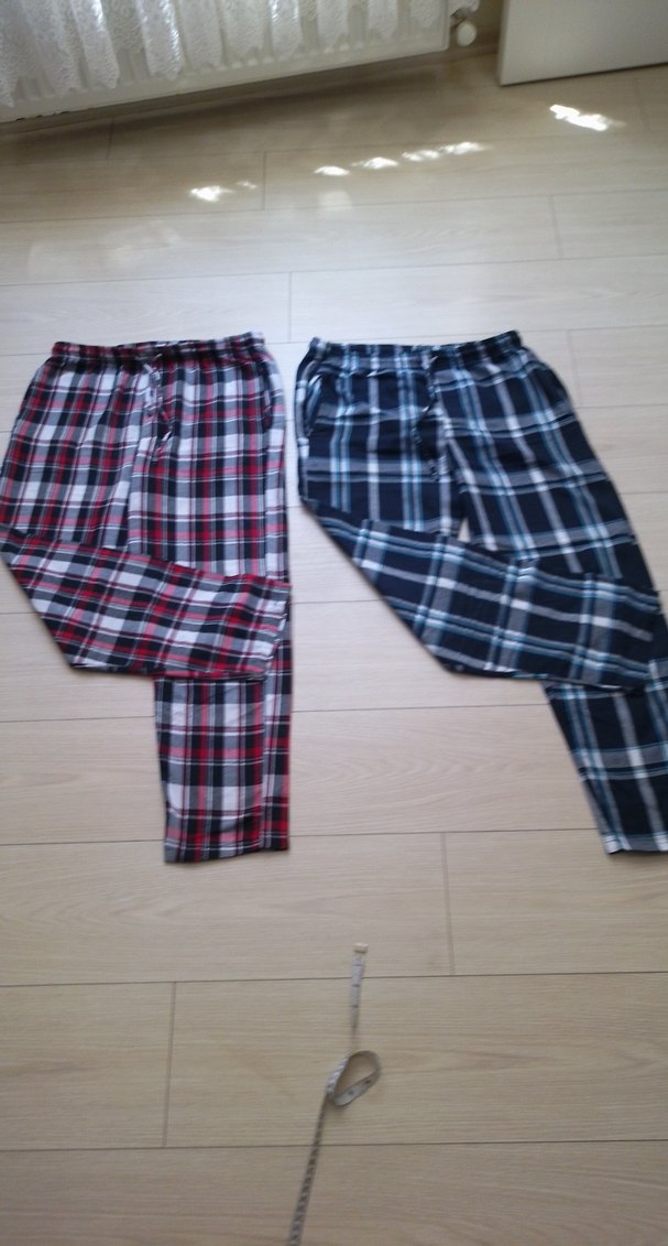 Kadin Dış giyim keten pantolonlar , elastik bel ve koyu çok renkli kareli desenle normal boy ve rahat kesimdir. cepli Dofi marka sıfır kullanım 2 Adet birlikte fiyatıdır L Beden