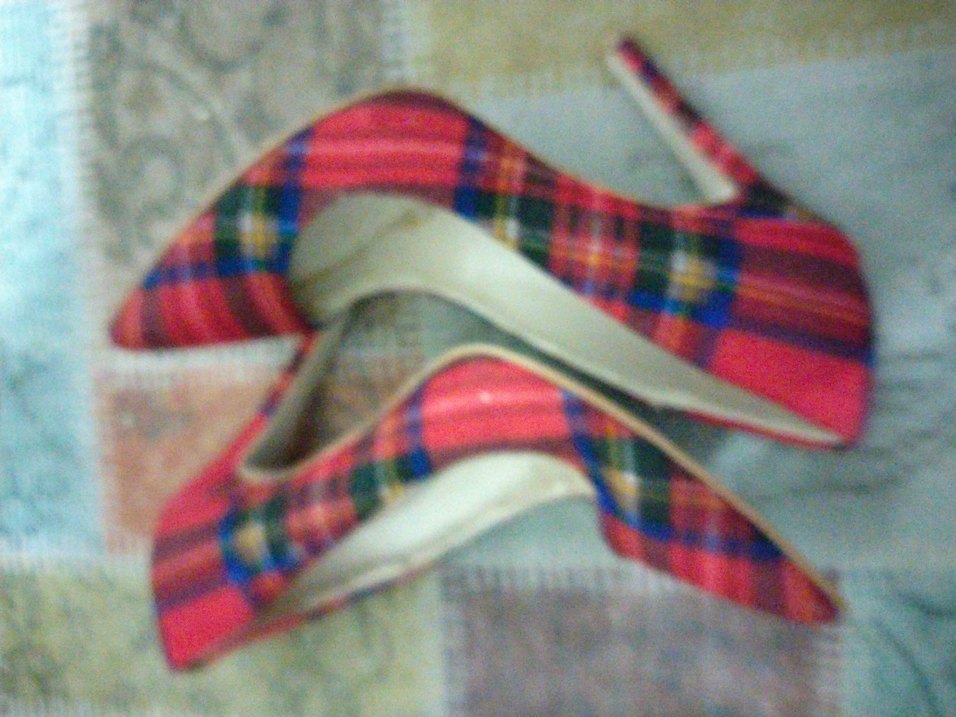 Sentetik kumaştan yapılmış, çok renkli kareli desene ve kurdele detayına sahip stiletto topuklu ayakkabılar. Parti için uygun. son fotoda iç kısmında dukulmeler oldu bikez giyildi kutusunda dukulme olmuş ben elimle temizledim giymeye engel bı durum yok bilerek alın sorun olmasın çok şık ayakabi