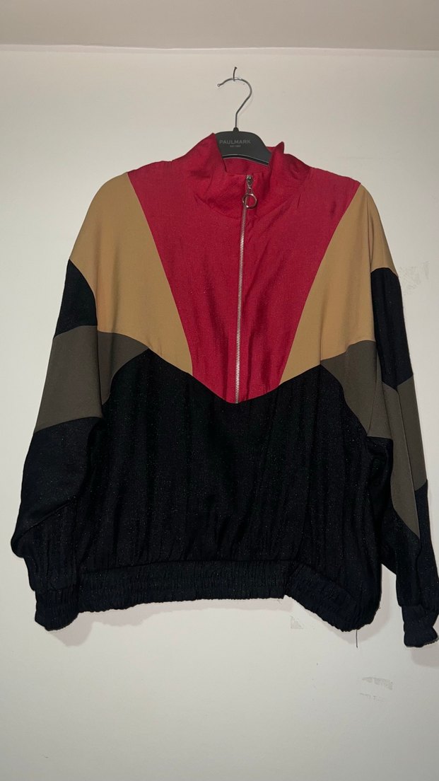 Kadınlar için yüksek yakalı, uzun kollu, bol kesim kısa fermuarlı ceket. Sentetik kumaştan, çok renkli ve koyu tonlarda, günlük kullanım için uygun.