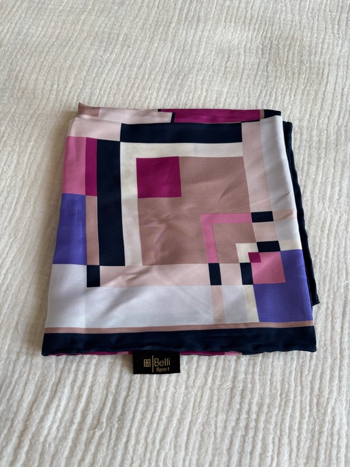 çok renkli geometrik desenli eşarp hiç kullanılmadı