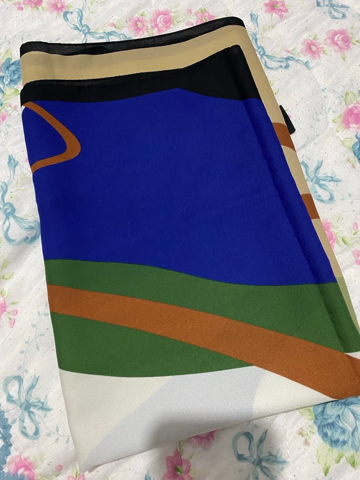 Kadın çok renkli şal, sentetik kumaştan drapeli ve çağdaş minimalist tasarıma sahip.