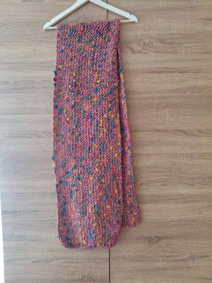 Kadınlar için yumuşak örme kumaştan yapılmış çok renkli, pastel tonlarda atkı.
