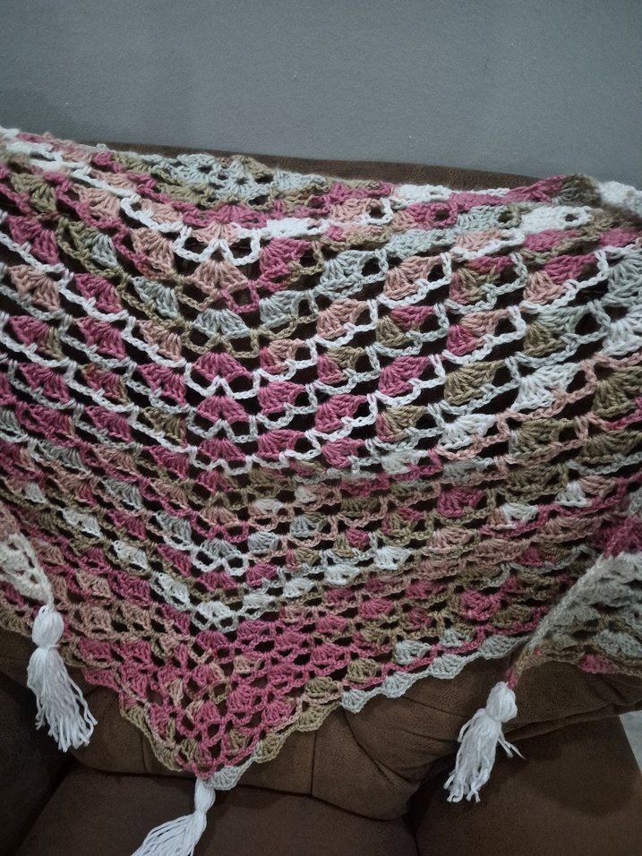 Kadınlar için çok renkli pastel tonlarda dantel detaylı, örgüden yapılmış rahat bir şal.