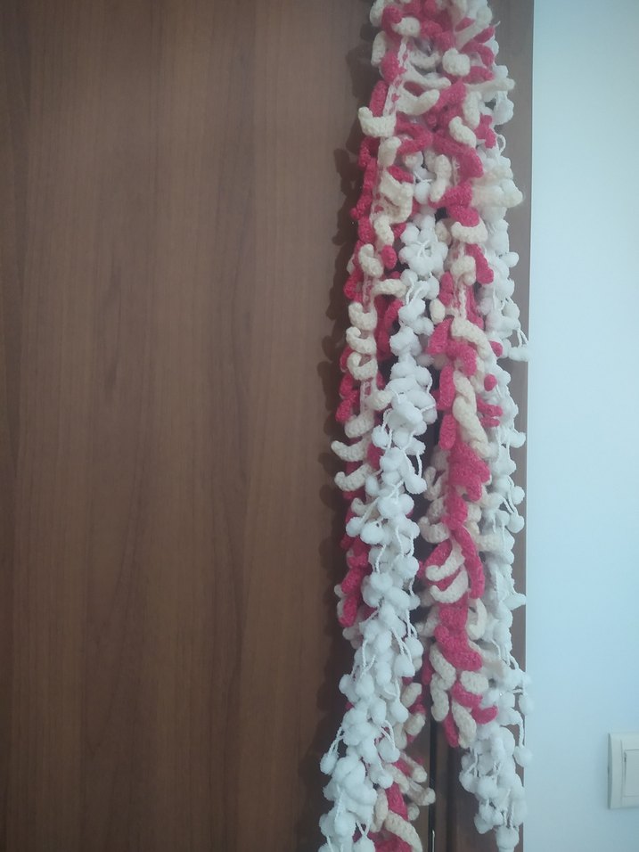 Kadınlar için örgü tasarımlı, pastel çok renkli şal. Rahat ve bohem tarzda, retro ve hippie görünüme uygun.