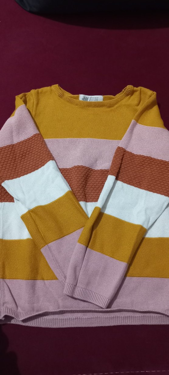 Kizlarr için çok renkli örgü triko kazak, uzun kollu ve yuvarlak yaka. Rahat kesimi ve pastel tonlarıyla günlük kullanıma uygun .