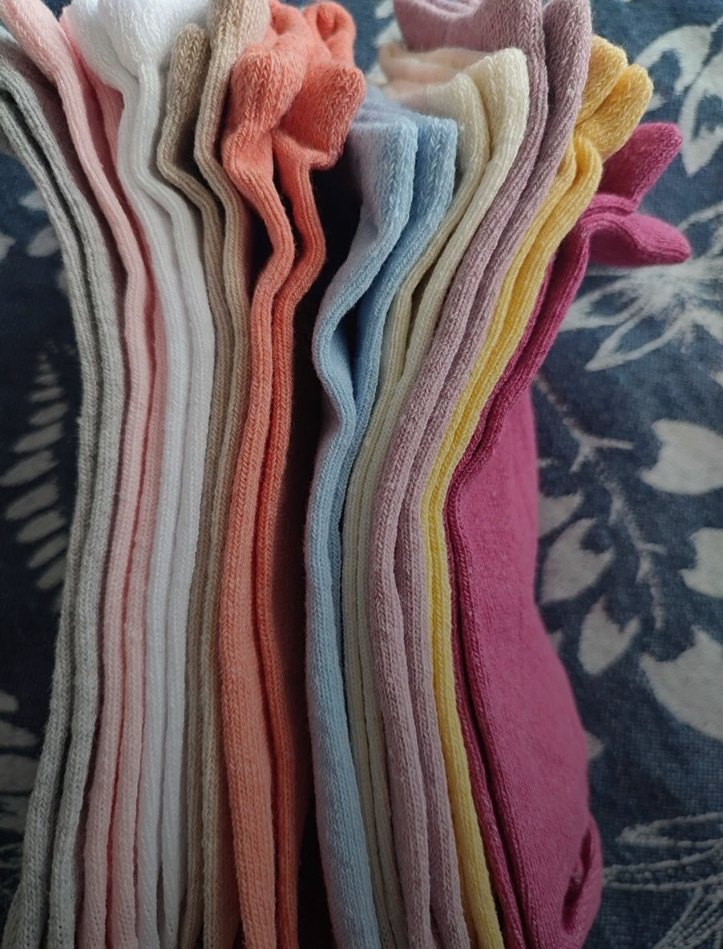 Yumuşak pamuktan üretilmiş, desen içermeyen, çok renkli pastel tonlarda kadın çorap Adet 35