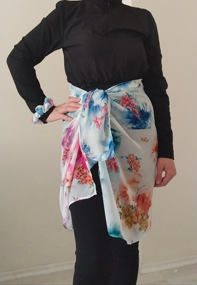 Kadınlar için bol kesim midi pareo kendim diktim hiç kullanılmadı şifon kumaş en 70 boy 140 cm