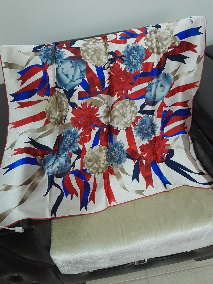 Kadınlar için çok renkli çiçek ve kurdele desenli, parlak sentetik kumaştan Paris tarzı avant-garde f eşarp