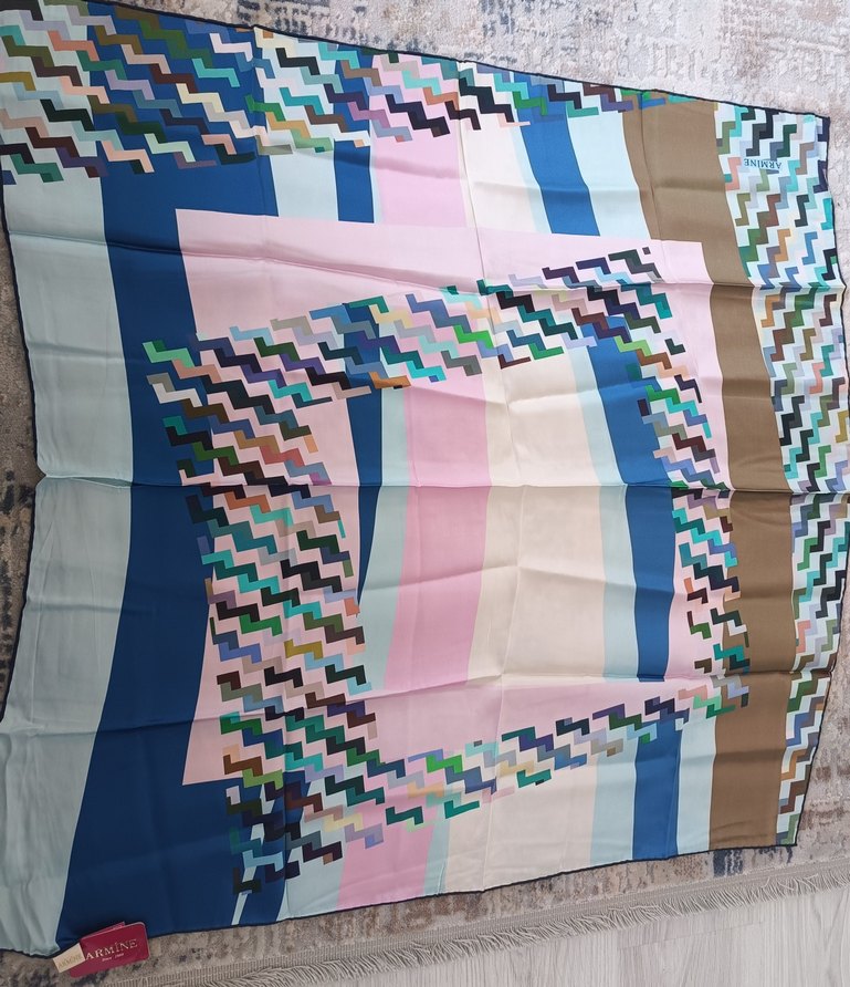 Kadınlar için pastel çok renkli desenlere sahip, yumuşak tekstil kumaştan drapeli modern ve avangart tarzda şal.