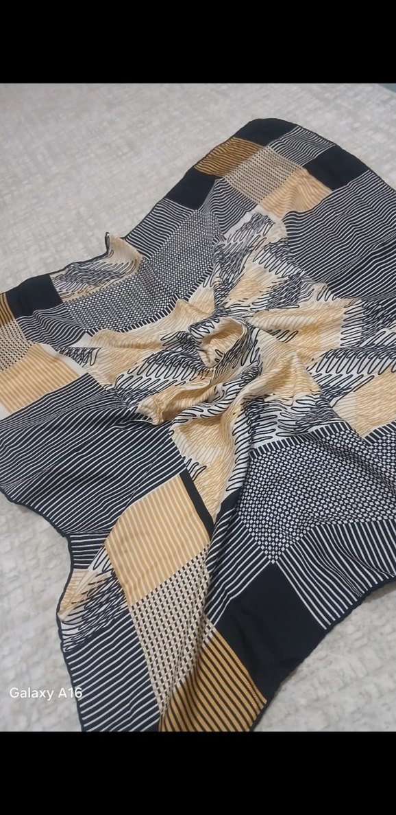 Kadınlar için çok renkli, pileli şal. Yumuşak sentetik kumaştan üretilmiş, gri, bej ve siyah tonlarda çağdaş ve rahat bir desen sunar. Moda ve öncü tarzlar için uygun.