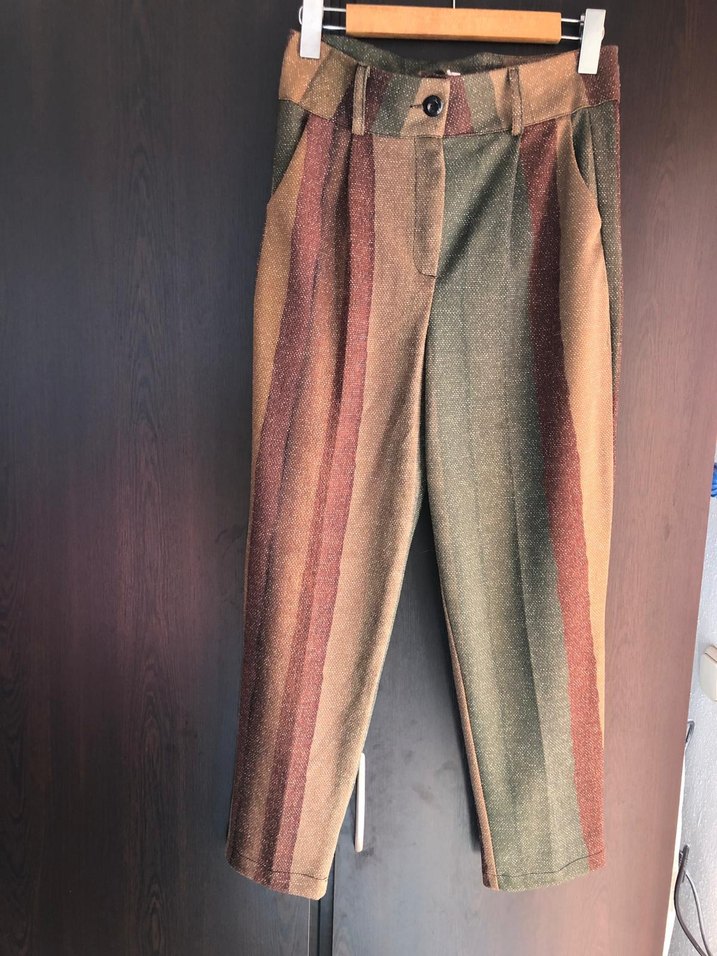 Kadın Çok Renkli Pilili Kumaş Pantolon