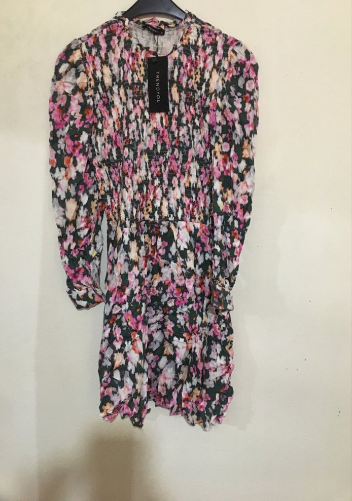 Kadınlar için çok renkli tie-dye desenli, pilili, uzun kollu ve bisiklet yaka midi elbise. Salaş kesimiyle rahat kullanım sağlar. A6-boy 90 iki göğüs arası 45