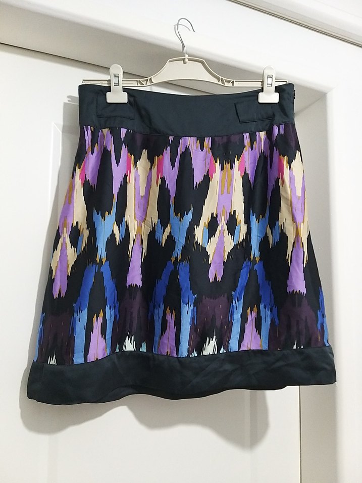 Kadınlar için çok renkli, koyu tonlu batik desenli, bol kesim ve pilili midi etek. Tekstil malzemeden, bohem tarzına uygun, dış mekan kullanımı için ideal. önden bel 43 cm boy 55 cm sayfamda çeşit ćoktur bakabilirsiniz