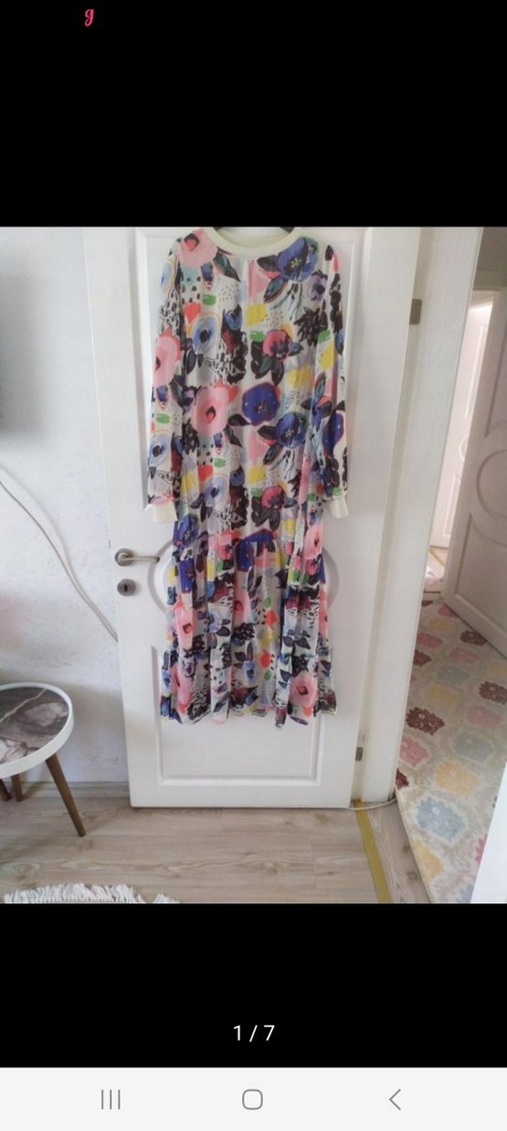 Kadınlar için çok renkli pilili uzun elbise, bol kesim ve uzun kollu. Pastel tonlarda tie-dye desenli, yumuşak sentetik kumaştan, günlük kullanıma uygun.