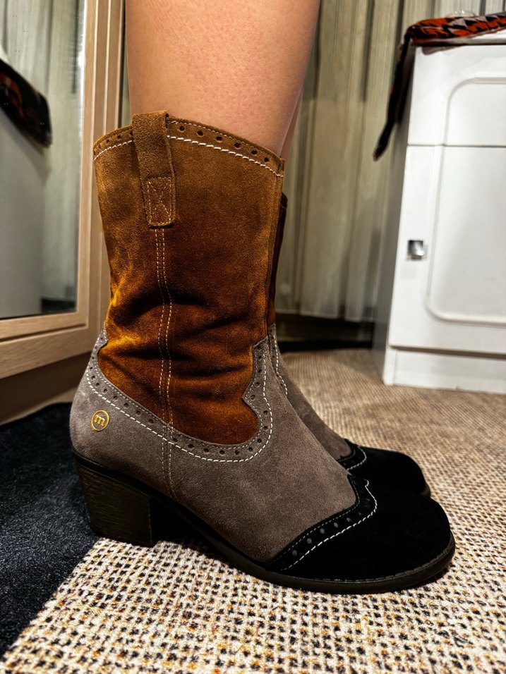 Kadın Çok Renkli Süet Bohem Blok Topuklu Bot