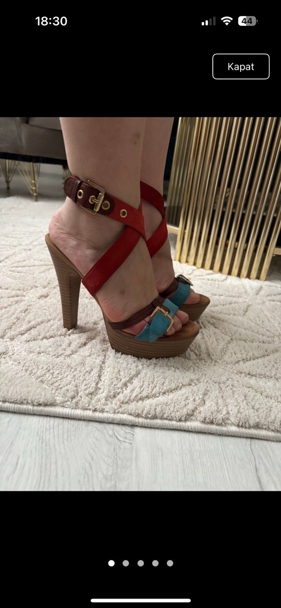 Çok renkli süet platform topuklu ayakkabılar, tokalı kayışlar ve parlak yılan deseniyle cesur, bohem tarz için romantik buluşmalara uygun. Kemal tanca deforme yok 35 numara kalıp büyük 36 giyene rahatlıkla olur ben 36 giyiyorum oluyor