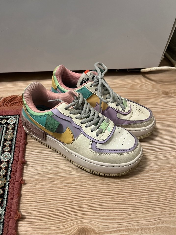 Kadınlar için çok renkli pastel tie-dye desenli, bağcıklı ve platform tabanlı kauçuk spor ayakkabılar, sportif ve günlük stil için uygun.