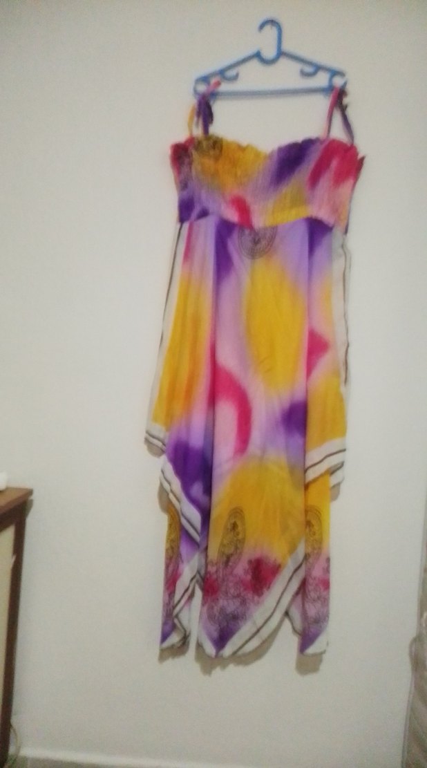 Kadın Çok Renkli Uzun Askısız Bağlamalı Elbise