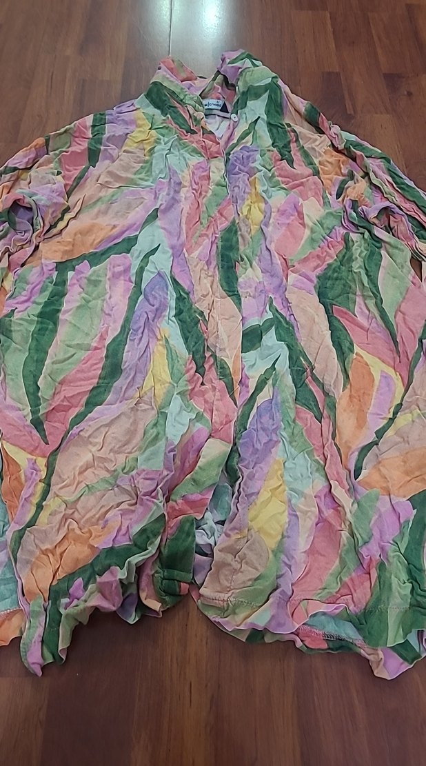 Kadınlar için çok renkli, pastel tonlarda tie-dye desenli, uzun ve bol kesim, kolsuz, bohem tarzda pareo. Dış mekan kullanımı için uygundur.