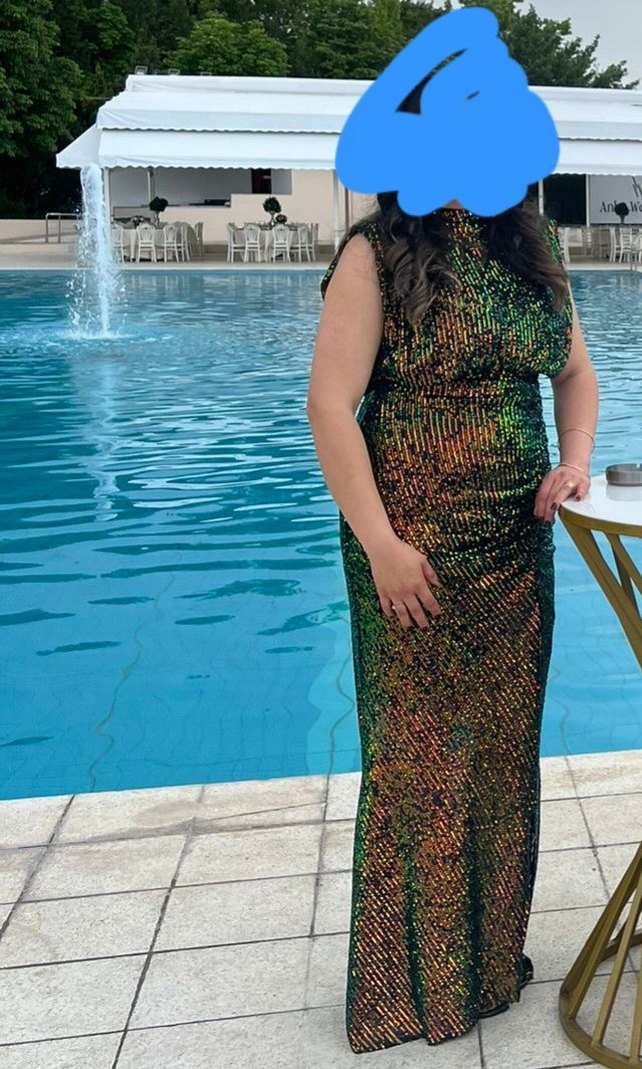 Kadın Çok Renkli Uzun Drapeli Abiye Elbise