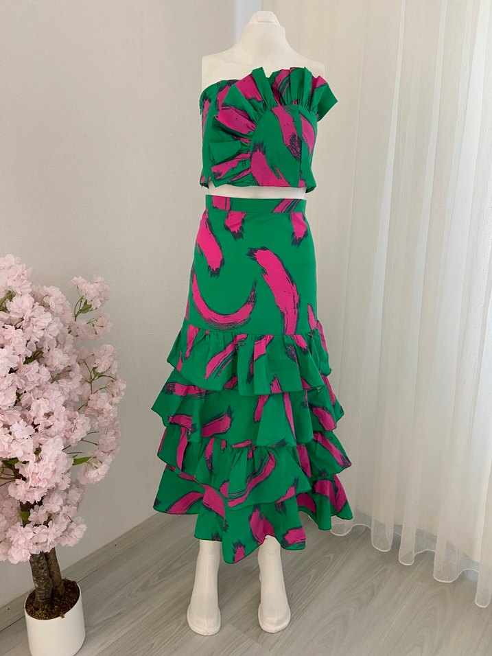 Kadın Çok Renkli Uzun Fırfırlı Takım