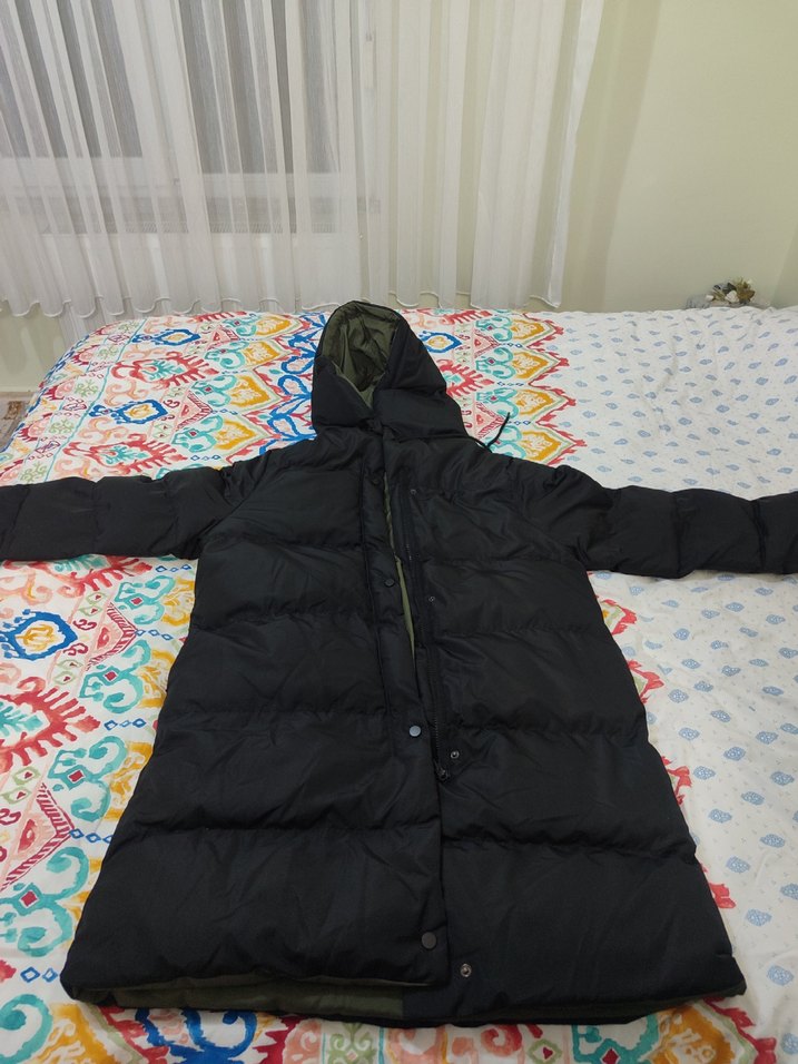Kadınlar için kapüşonlu, uzun kollu ve yüksek yakalı, fermuarlı, çok renkli koyu tonlarda uzun kışlık mont. Sokak modasına uygun ve günlük kullanıma ideal. Yeni etiketli.