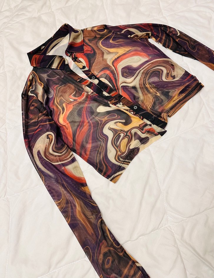 Kadın Çok Renkli Uzun Kollu Batik Transparan Gömlek