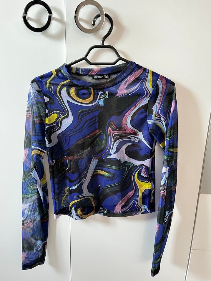 Kadınlar için çok renkli tie-dye desenli, uzun kollu, turtle neck ve drapeli tasarıma sahip dar kesim midi uzunluğunda bluz. Sentetik kumaştan üretilmiştir.