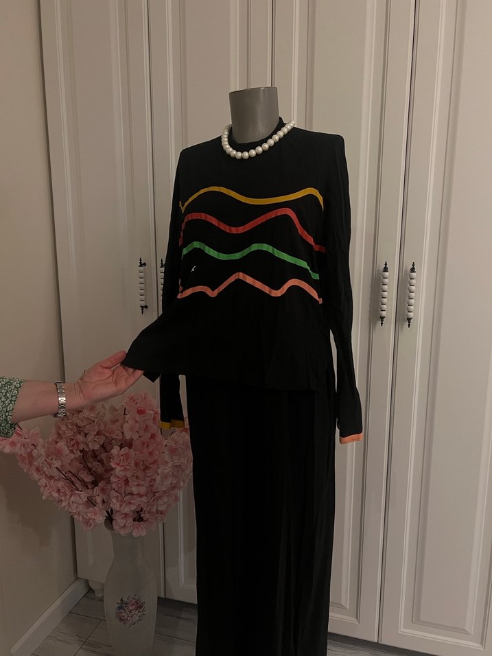 penye elbise penye kol altı 56 boy 137 0 ürün 200 tlKadınlar için uzun kollu, bisiklet yaka ve drapeli tasarıma sahip elbise. Çok renkli dalga desenleri ve koyu zeminli, parti için uygun düzenli kesim.