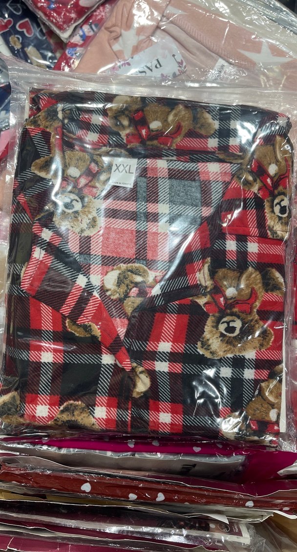 Kadınlar için bol kesim, uzun kollu ve uzun boy pijama takımı. Koyu renkli çok renkli ekose desen ve baskılı oyuncak ayı figürleriyle rahat ve sokak stilini birleştirir.