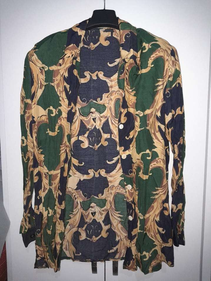 Pamuklu kumaştan, çok renkli kamuflaj desenli, uzun kesim, bol ve drapeli kadın gömleği. Notlu yakası, yırtmaçlı, vatkalı ve avangart tarzıyla öne çıkar. Defosuz M -L uygundur.