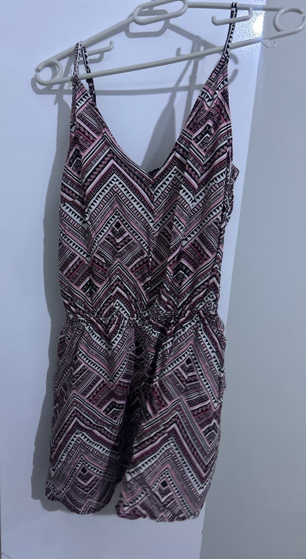 Kadınlar için V yakalı, askılı ve bol kesimli, dökümlü tasarımlı tulum. Çok renkli koyu tie-dye desenli, sentetik kumaştan, günlük kullanım için uygun. Çok rahat ve kullanışlı.