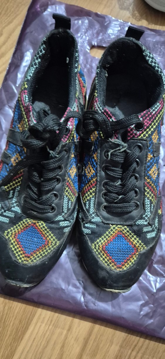 Kadınlar için çok renkli yılan desenli, dolgu topuklu ve tokalı detaylara sahip spor ayakkabılar. Kauçuk malzemeden üretilmiş, günlük kullanım için uygundur.